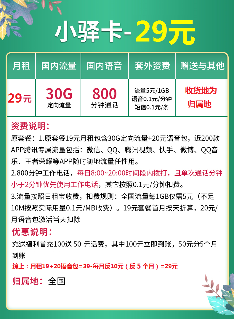 1、没有通用流量,只有30G定向流量,不太适合智能手机使用,如果你有双卡上网,小驿卡只用来打电话那没有问题。