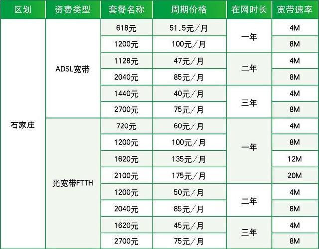 | 地区 | 套餐名称 | 套餐资费 | 带宽速率 | 安装费 | 其他费用 |